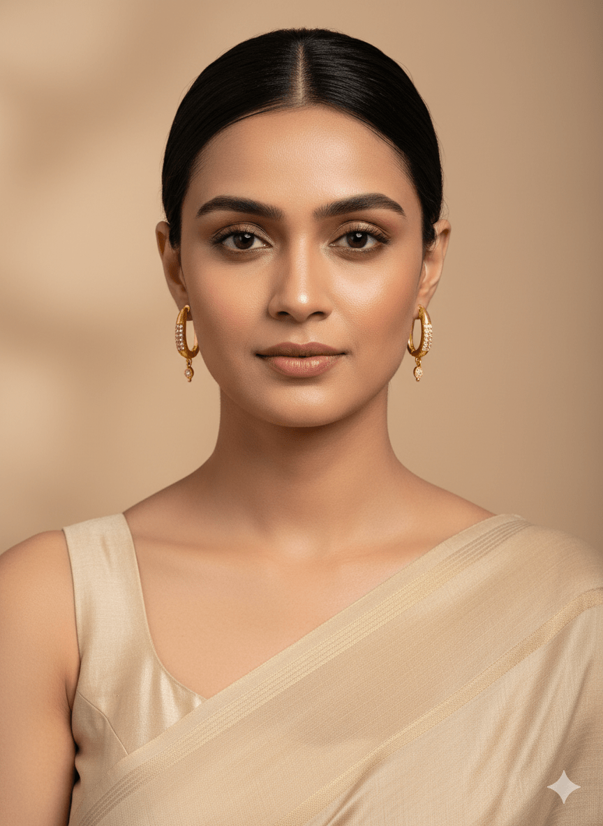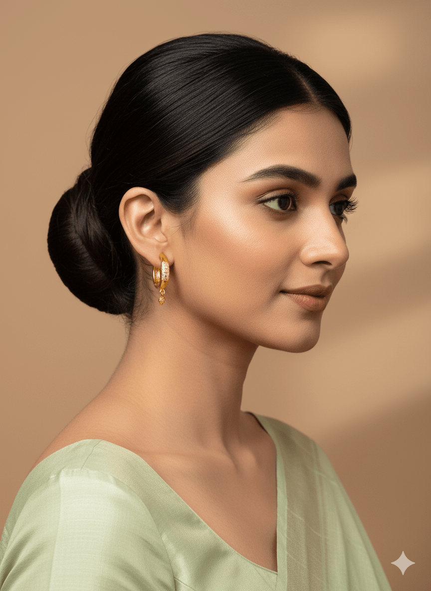 Crafted for both elegance and everyday wear, these gold hoop earrings feature a secure hinged clasp, ensuring they stay comfortably in place throughout the day. The lightweight design makes them ideal for all-day wear without compromising on style. Their classic hoop shape with a modern gemstone twist makes them a versatile accessory for work, parties, and special occasions alike.