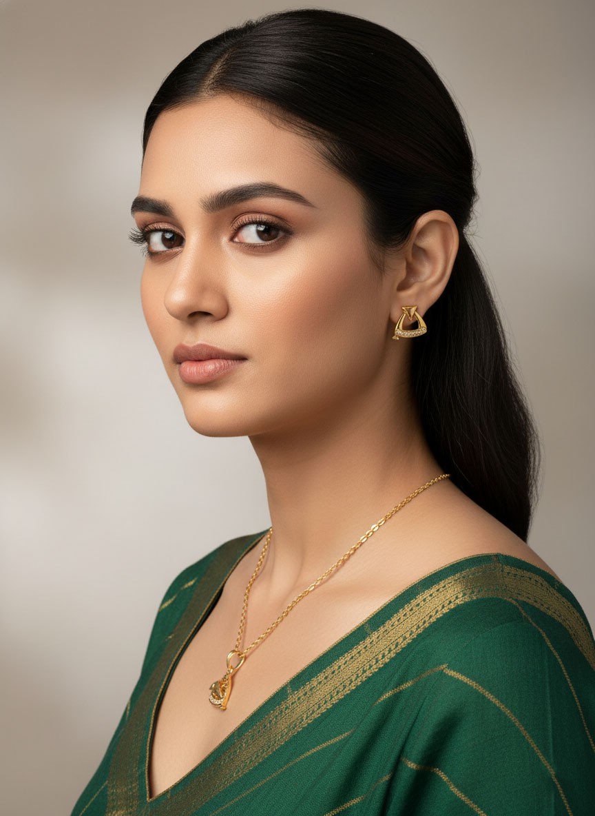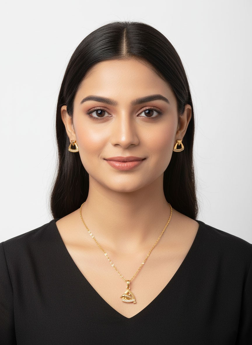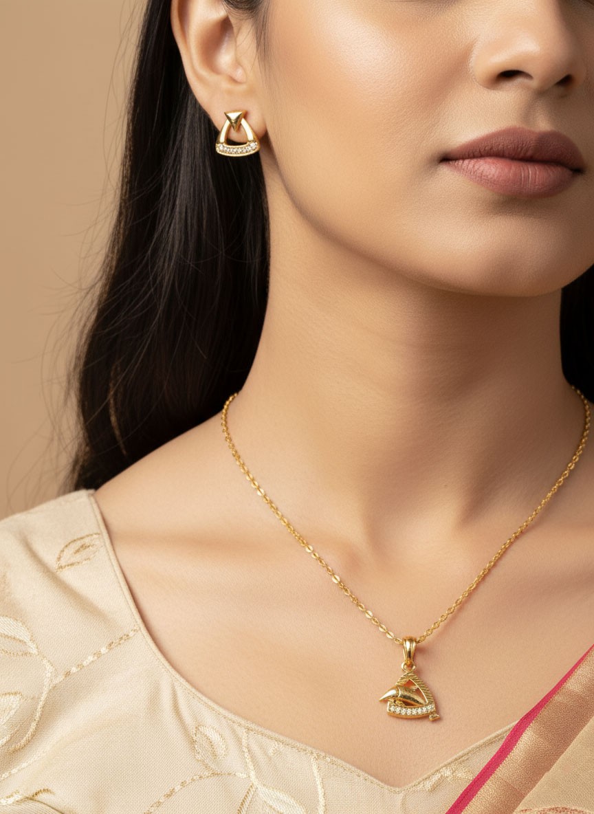 Whether you’re dressing for a celebration, a spiritual occasion, or simply adorning yourself for a day out, this elegant set adds an aura of refinement and personal expression. The fish pendant, nestled within a radiant triangle, subtly whispers stories of culture, belief, and femininity.